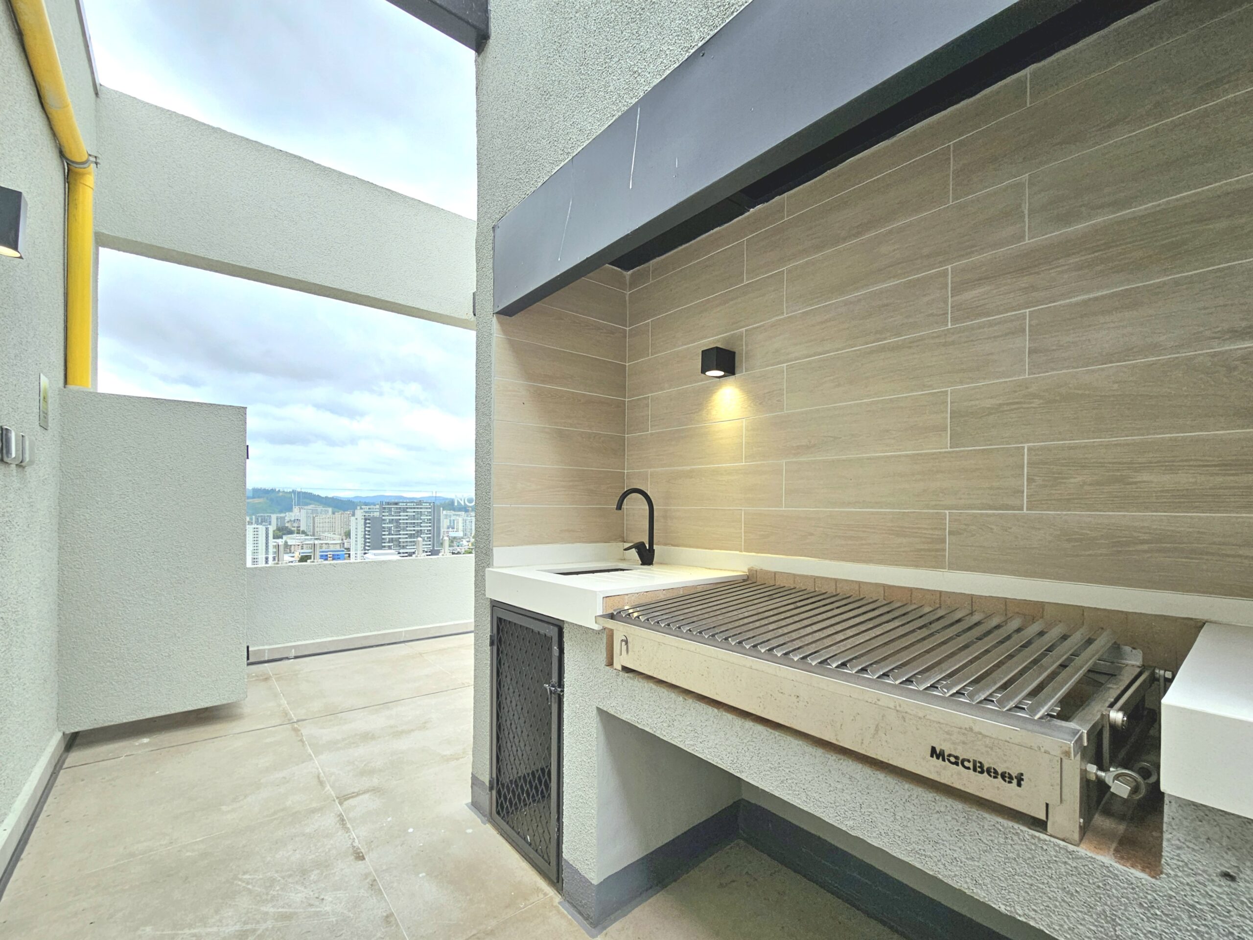 Situado en el piso 4, destaca por su excelente luz natural. La cocina está integrada al living comedor y el edificio ofrece espacios comunes de primer nivel: gimnasio, cowork, quincho, sala de eventos y lavandería.