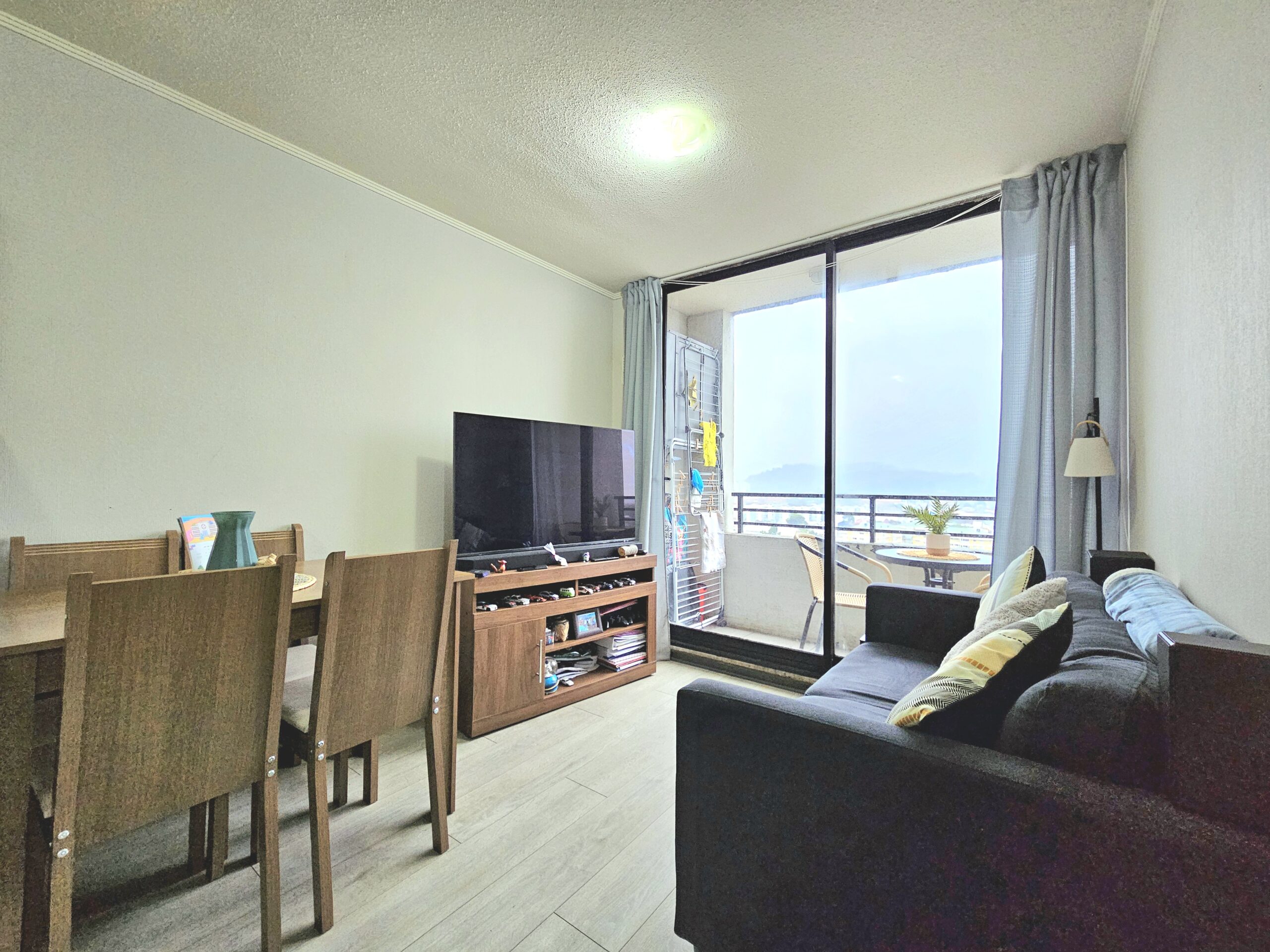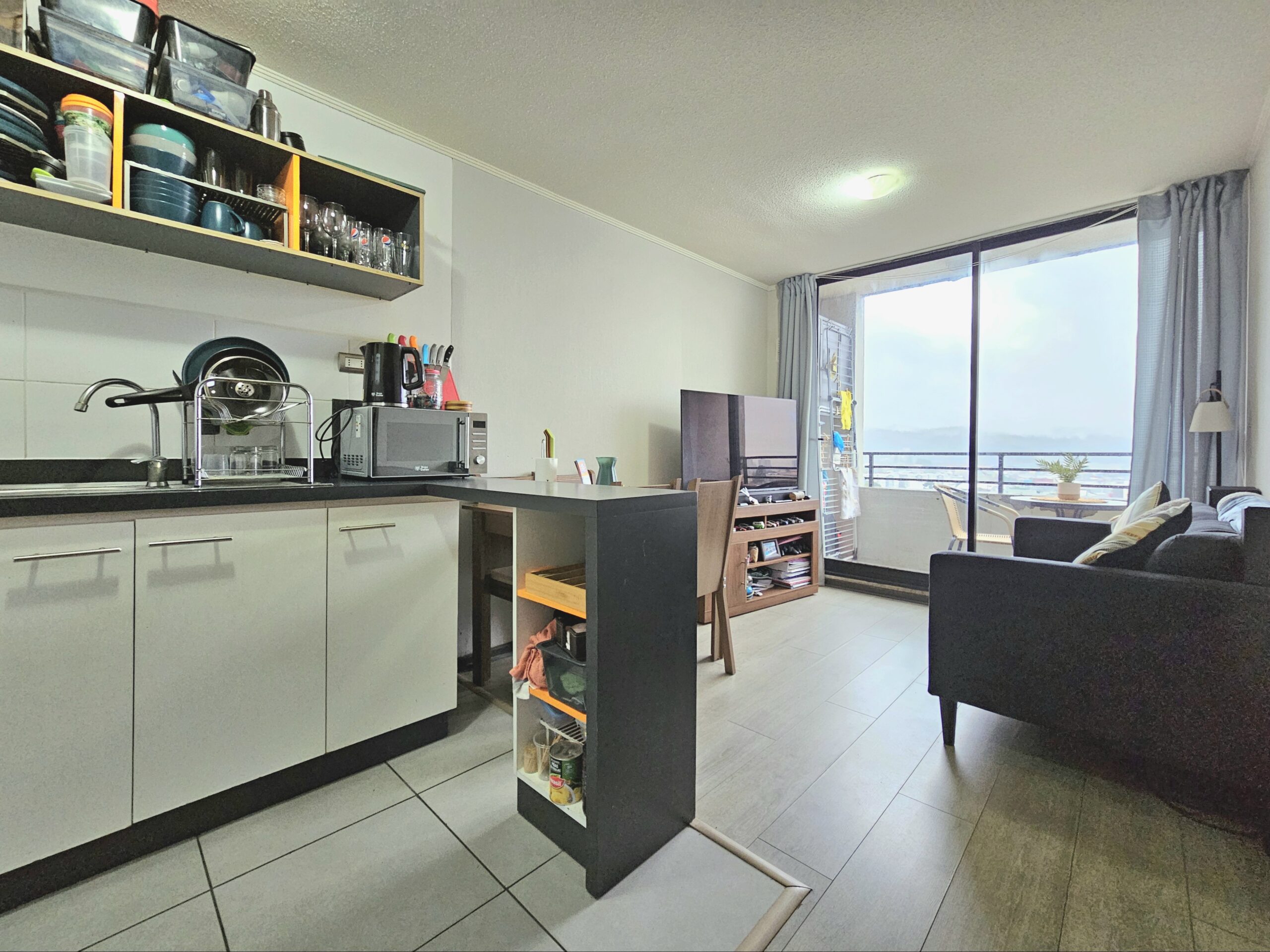 Acogedor y luminoso departamento en venta ubicado en Camilo Henríquez, en la comuna de Concepción. Esta propiedad se ubica en el piso 13 de un edificio con conserjería 24/7, con vista hacia el centro de Concepción. Se encuentra en buen estado de conservación, con mantenimiento recién realizado. Cuenta con 1 dormitorio y 1 baño (fuera del dormitorio). Piso flotante en living, alfombra en dormitorio, y cerámicos en cocina y baño.