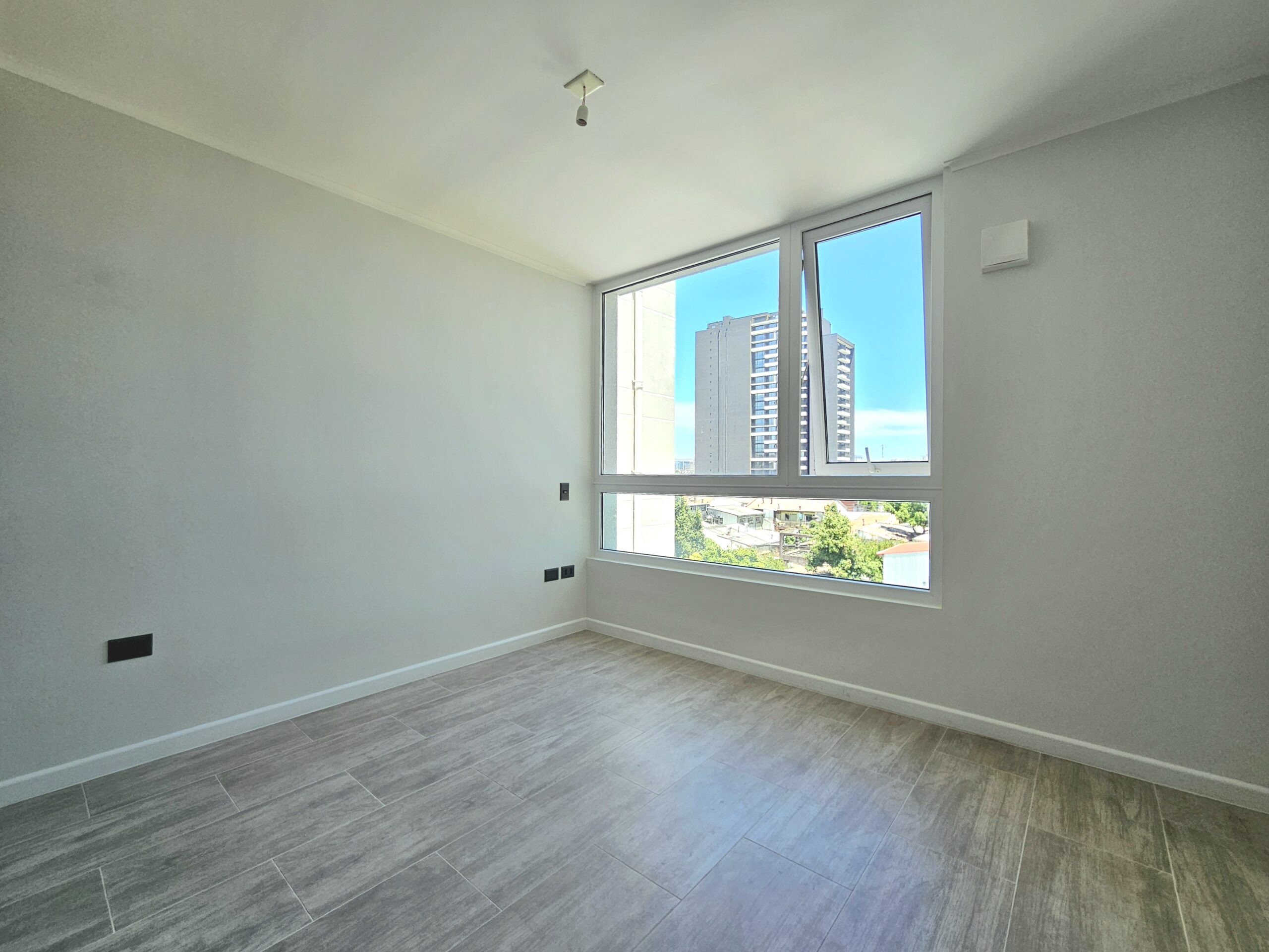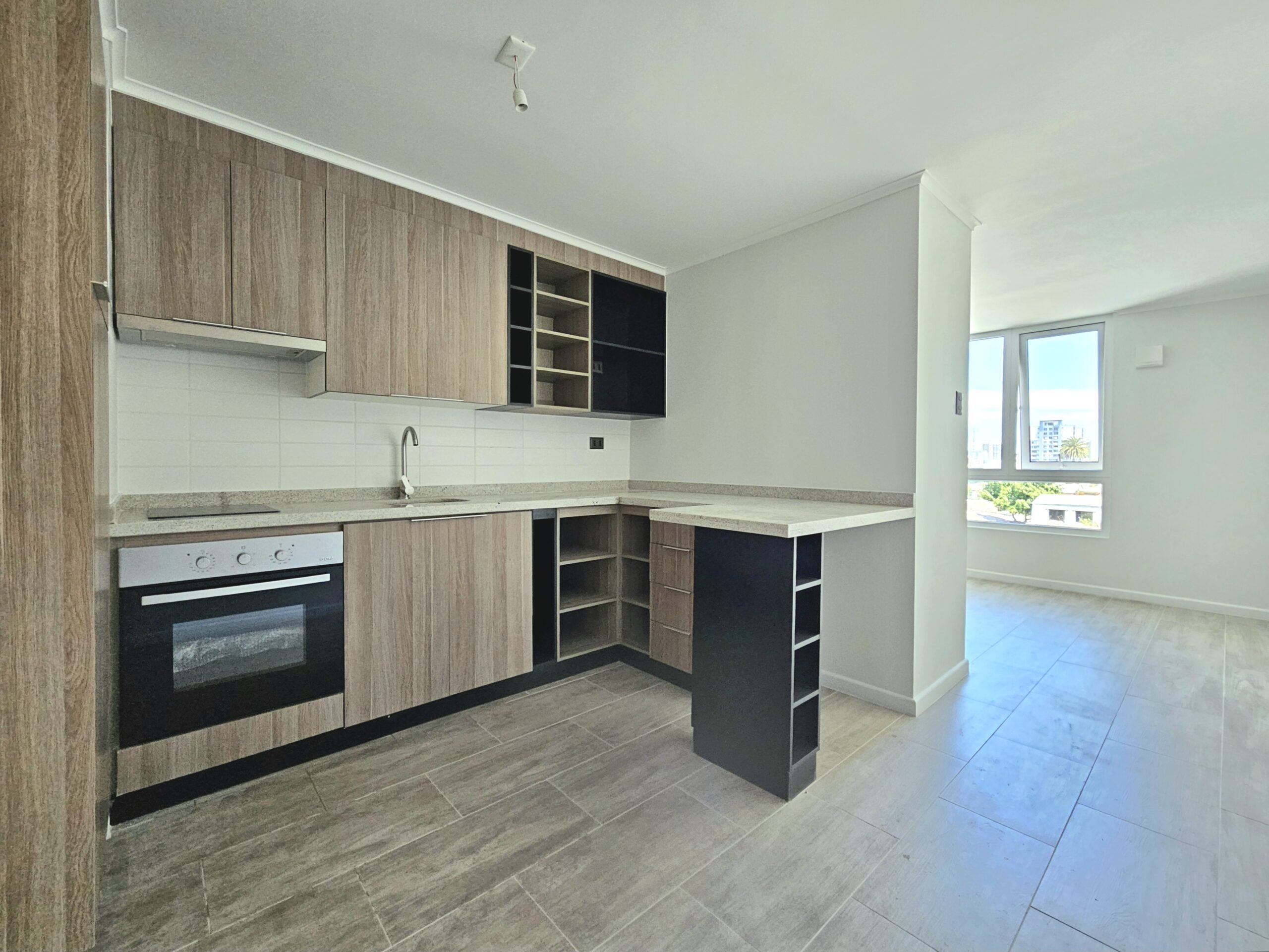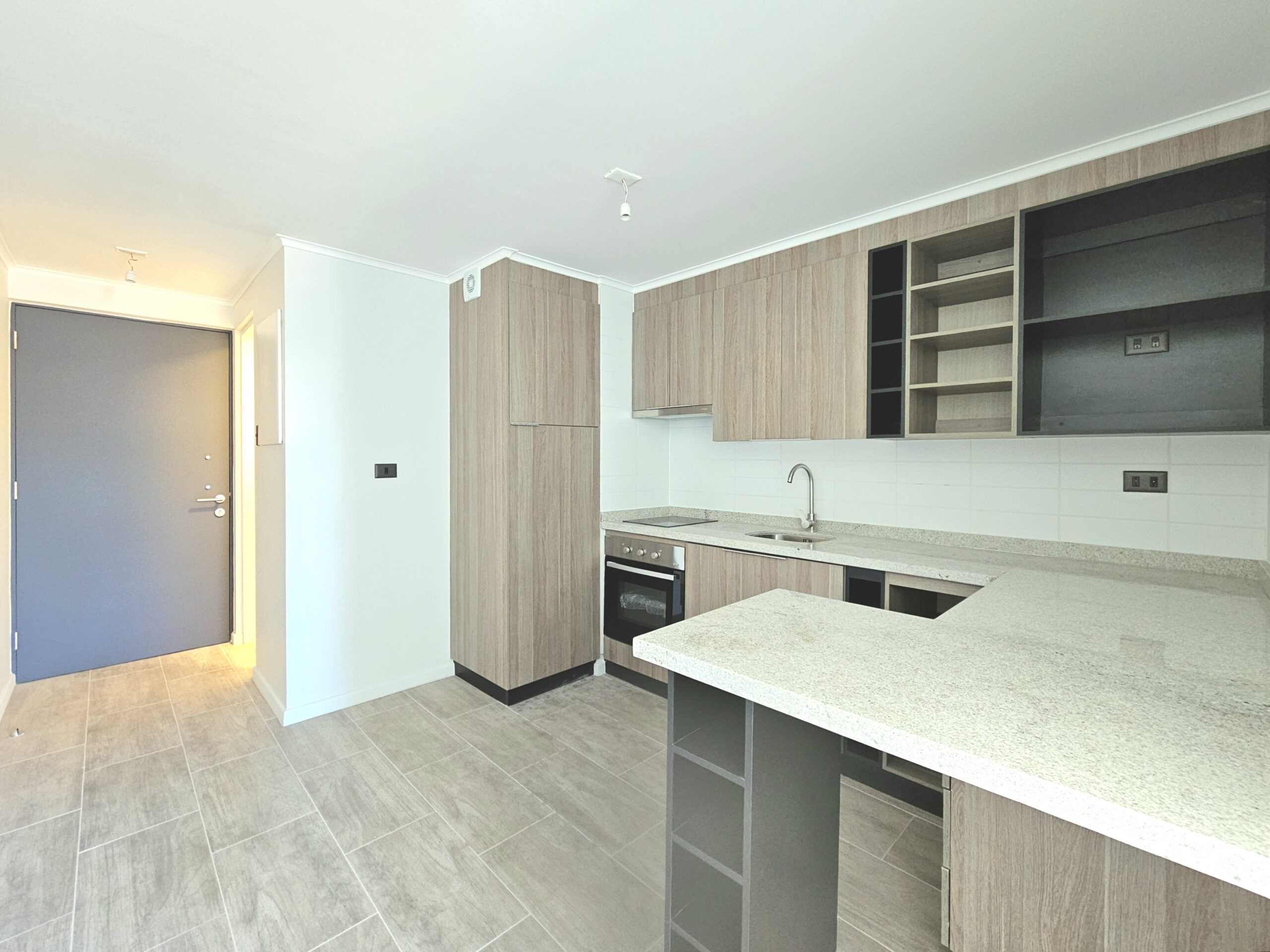 Situado en el piso 5, con muy buena iluminación natural. Cuenta con cocina full equipada con encimera y horno, y el edificio ofrece espacios comunes de primer nivel: gimnasio, cowork, sala de eventos, sala e-commerce y lavandería.